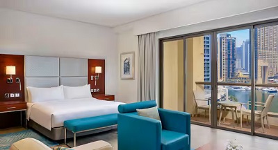 The rooms come with all the standards you’d expect from the Hilton name tag, including 24-hour room service. Guests also have access to some of the facilities at the Hilton Jumeirah Resort next door.